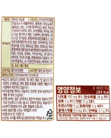 콘밀, 마늘농축액, 설탕, 소맥분, 팜유, 미강유, 가공버터, 빵가루 (소맥분, 가공버터, 탈지분유, 효모, 포도당), 전지분유, 혼합제제1 (결정셀룰로스, 설탕, 향료제제 (말토덱스트린, 향료, 아라비아검, 프로필렌글리콜, 초산), 정제소금, 향료), 정제소금, 파슬리, 혼합제제2 (폴리글리세린축합리시놀레인산에스테르, 미강유, 정제수, 카카오색소, 안나토색소, 비타민E, 탄산나트륨), 혼합제제2 (가공유지, 파프리카추출색소, B-카로틴(착색료), 비타민E), 향료