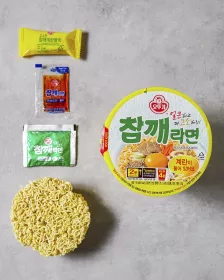 Suppe: Pikanter Sesam-Eierblock {Eier (einheimisch), Frühlingszwiebeln (hergestellt in China), Dextrin, Stärkesirup, geröstete Sesamkörner}, raffiniertes Salz, Pflanzenöl, Glukose, Sojasaucenpulver, Extraktöl mit rotem Pfeffergeschmack, Maisstärke , rotes Pfefferpulver, Sesamöl, Umami-Geschmacksbasis, Sojasaucenbasis, weißer Zucker, Rinderbrühepulver, würzig-scharfes Gewürzpulver, Dadaegi-Gewürzpulver, Meerrettich-Gewürzpulver, gewürztes Rindfleischpulver, gewürztes Brühepulver, Alpha-Maispulver, Pfefferpulver , würziges Eintopfpulver, echtes Rindfleischknochen-Gewürzpulver, gemischtes Gemüsepulver, gebratenes Knoblauchpulver, Knoblauchgewürzpulver, dunkles Rindfleischgeschmackspulver, gebratenes Sesampulver, Hefegewürzpulver, Geschmacksverstärker, Hefeextraktpulver, Rinderknochenkonzentratpulver, würziger Chiliextrakt, Chili-Extrakt, getrocknete Frühlingszwiebeln, getrocknete Algen, geröstete Algen