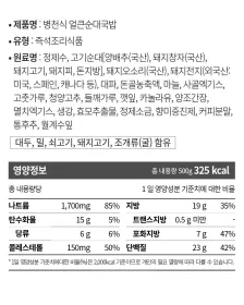 대두, 밀, 쇠고기, 돼지고기, 조개류(굴) 함유